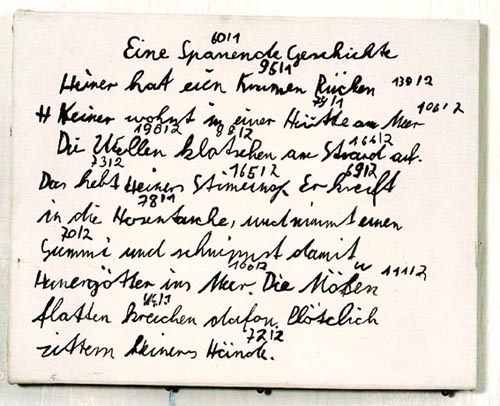 Nietzschenotiz, 18 x 27 cm, Öl auf Holz, 2001 (Privatbesitz,
